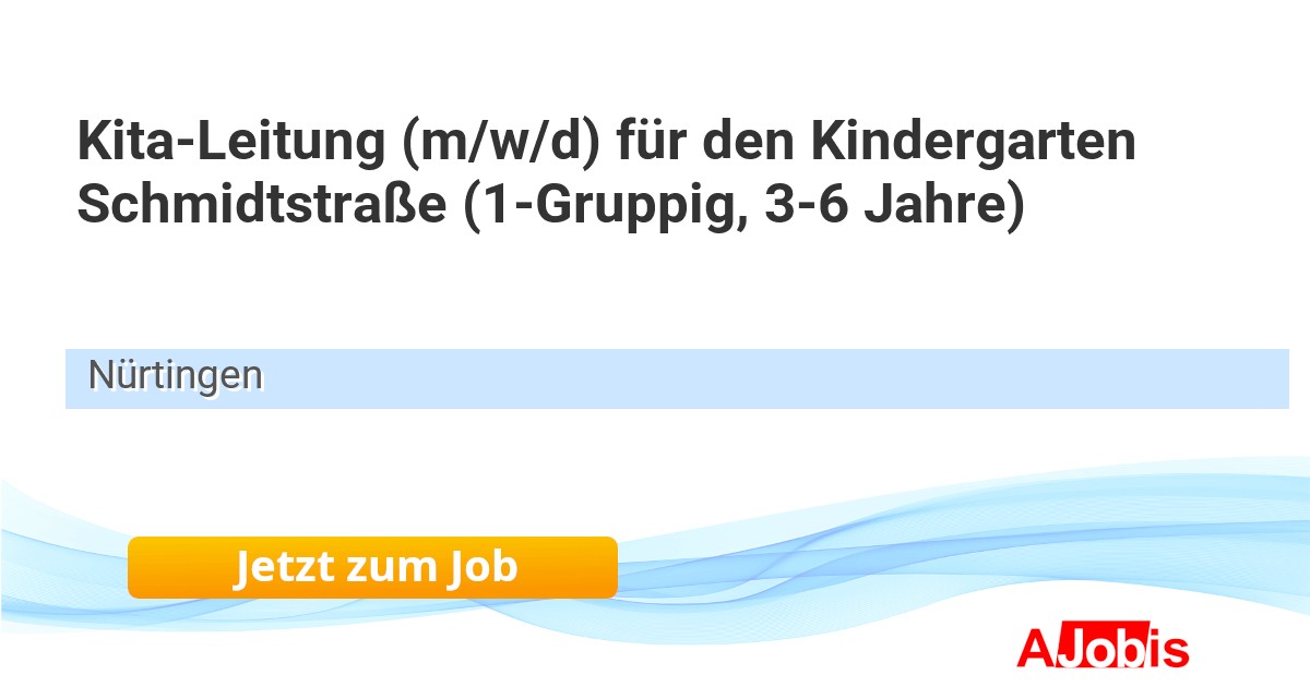 Stadt Nürtingen - Nürtingen [22.11.2025] -- Die Stadt Nürtingen stellt zum nächstmöglichen Zeitpunkt eine Kita-Leitung (m/w/d) für den Kindergarten Schmidtstraße (1-Gruppig, 3-6 Jahre) für den Kindergarten Schmidtstraße (1-gruppig, 3-6 Jahre), in Vollzeit (100%) ein. IHRE KERNAUFGABEN Fachliche... |