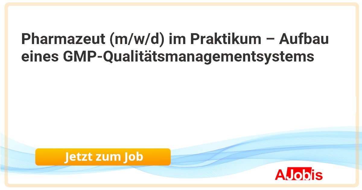 Fette Compacting GmbH - Schwarzenbek bei Hamburg [06.11.2025] -- Für den Bereich Customer Development Center suchen wir an unserem Standort in Schwarzenbek einen Pharmazeuten (m/w/d) im Praktikum mit dem Schwerpunkt Aufbau eines GMP-Qualitätsmanagementsystems. Der Geschäftsbereich Fette Compacting Technologie- und... |