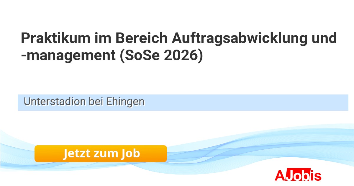 Leuze electronic GmbH + Co. KG - Unterstadion bei Ehingen [27.11.2025] --Praktikum im Bereich Auftragsabwicklung und ‑management (SoSe 2026) Bereich: Order Processing Center Standort: Unterstadion bei Ehingen / Donau Beschäftigungsart: Praktikum Wer sind die Sensor People Über 60 Jahre Erfahrung haben Leuze zum Experten für innovative und... |