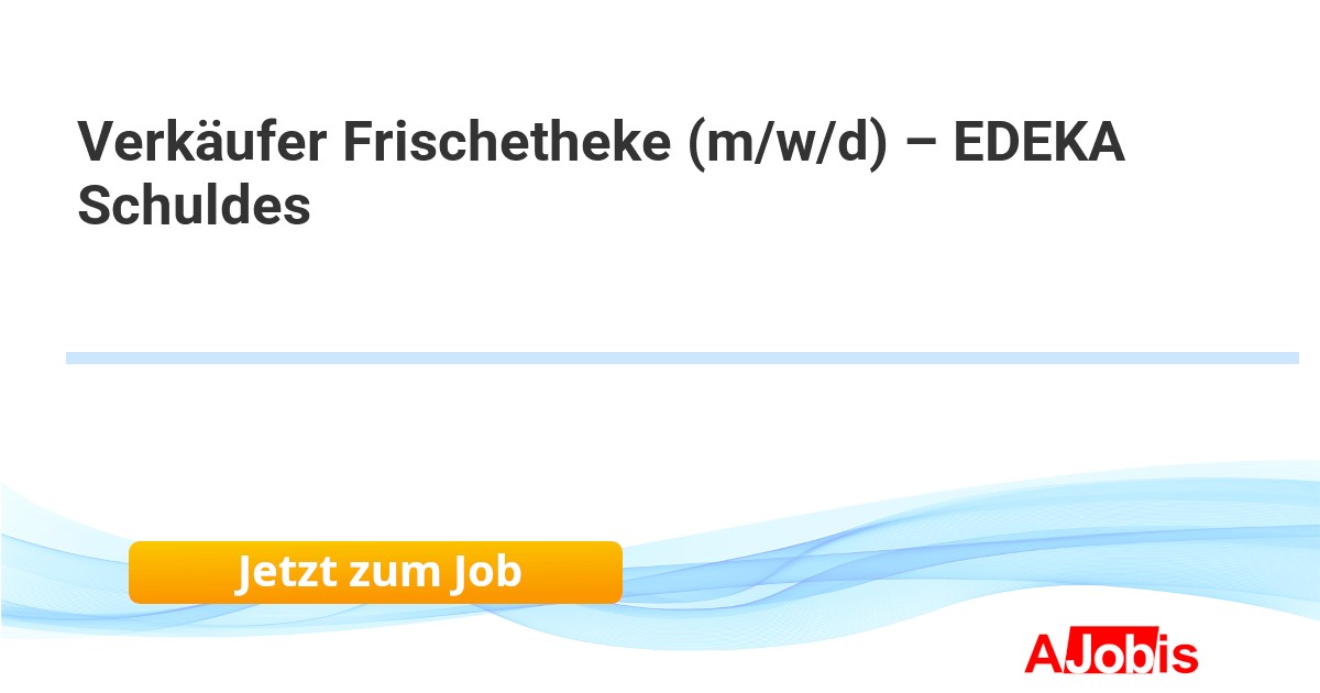 EDEKA Schuldes - Bad Lobenstein [09.11.2025] --Verkäufer Frischetheke (m/w/d) – EDEKA Schuldes Bei Marcel Schuldes Frischemarkt e.K. in Poststraße 1, Bad Lobenstein - Job-ID: NST_SEH-390949 Einsatzort Bad Lobenstein Eintrittsdatum Ab sofort Beschäftigungsart Vollzeit oder Teilzeit Befristung Nein Bezüge... |