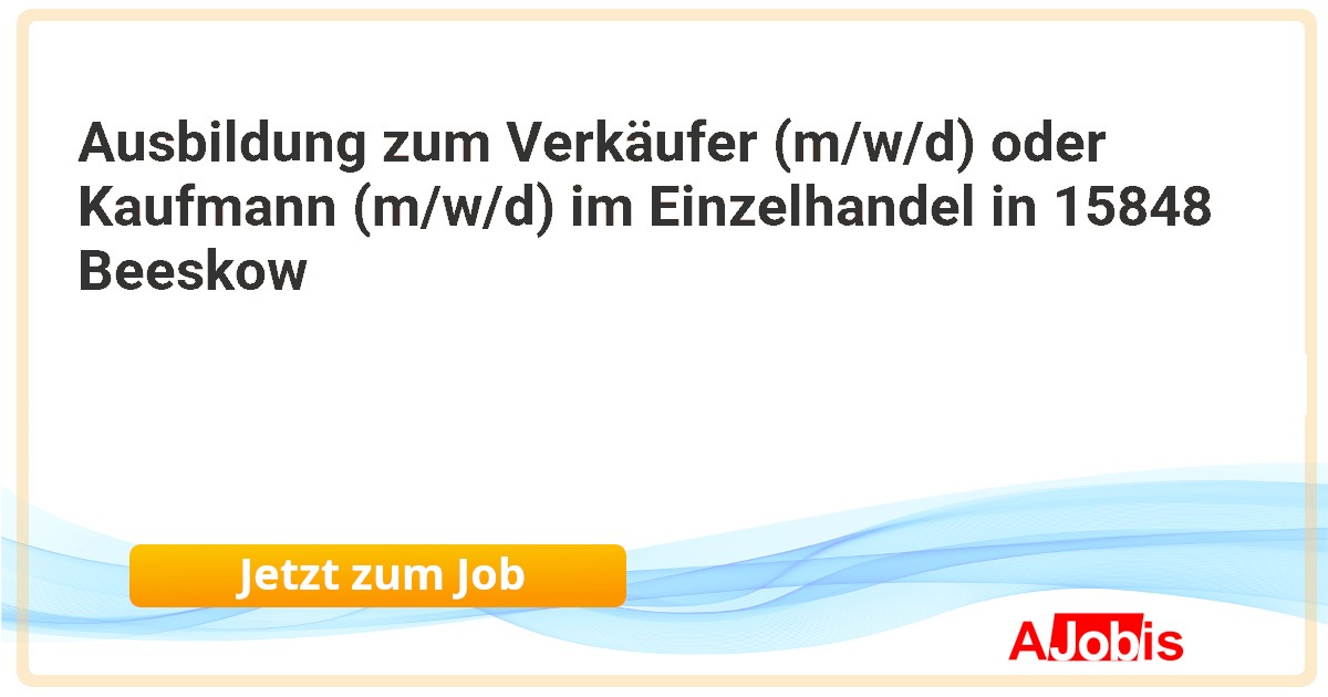 Ausbildung zum Verkäufer (m/w/d) oder Kaufmann (m/w/d) im Einzelhandel in 15848 Beeskow*