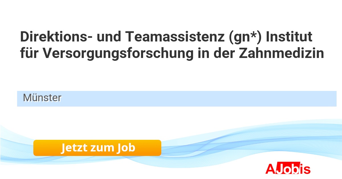 Universitätsklinikum Münster - Münster [08.11.2025] -- Direktions- und Teamassistenz (gn*) Institut für Versorgungsforschung in der Zahnmedizin Unbefristet | Beginn zum 01.02.2026 | In Teilzeit (mindestens 19,25 Wochenstunden) oder Vollzeit | Vergütung nach TV-L | Institut für Versorgungsforschung in der Zahnmedizin |... |