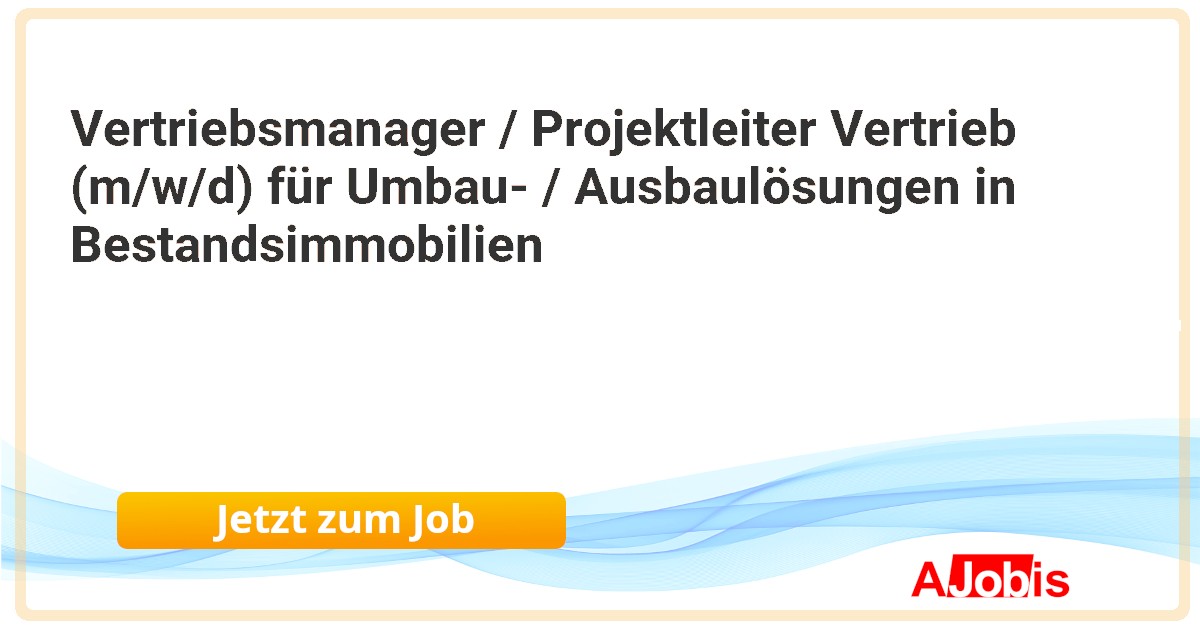 Vertriebsmanager / Projektleiter Vertrieb (m/w/d) für Umbau- / Ausbaulösungen in Bestandsimmobilien* GOLDBECK Technical Solutions GmbH - Berlin-Zentrum[12.11.2025] --GOLDBECK realisiert zukunftsweisende Immobilien in Europa. Wir verstehen Gebäude als Produkte und bieten alle Leistungen aus einer Hand: vom Design über den Bau bis zu Services im Betrieb. Aktuell beschäftigt unser Familienunternehmen mehr als 13.000 Mitarbeitende an über... |
