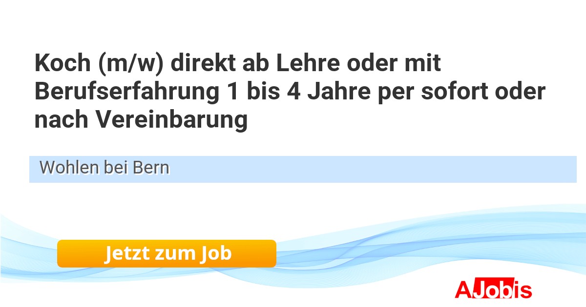 Koch (m/w) direkt ab Lehre oder mit Berufserfahrung 1 bis 4 Jahre per sofort oder nach Vereinbarung* Gasthof Kreuz - Wohlen bei Bern[30.10.2025] -- Landgasthof zum Kreuz in 3033 Wohlen bei Bern Anstellungsart: Vollzeit markterechte, frische Küche mit neuzeitlicher Küchenpraxis einhaltung der Küchenrichtlinien im Sommer Gartenrestaurant Giardino Sie sind: Gastroprofi, kreativ, flexibel, belastbar und teamfähig... |