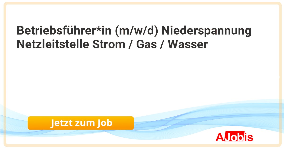 Stadtwerke Augsburg Holding GmbH - Augsburg [29.11.2025] -- Betriebsführer*in (m/w/d) Niederspannung Netzleitstelle Strom/Gas/Wasser für das Leittechnikteam der swa Netze GmbH Wir – die Stadtwerke Augsburg – machen mit innovativen Lösungen das Leben der Menschen in ihrer Heimat in und um Augsburg einfacher und nachhaltiger.... |