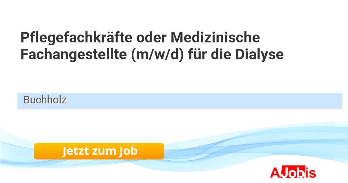 Nephrocare Buchholz GmbH - Buchholz [21.11.2025] --Mit deiner Fachkompetenz gewährleistest du eine fachspezifische und individuelle Versorgung und Betreuung unserer DialysepatientInnen in allen Phasen der Dialysebehandlung