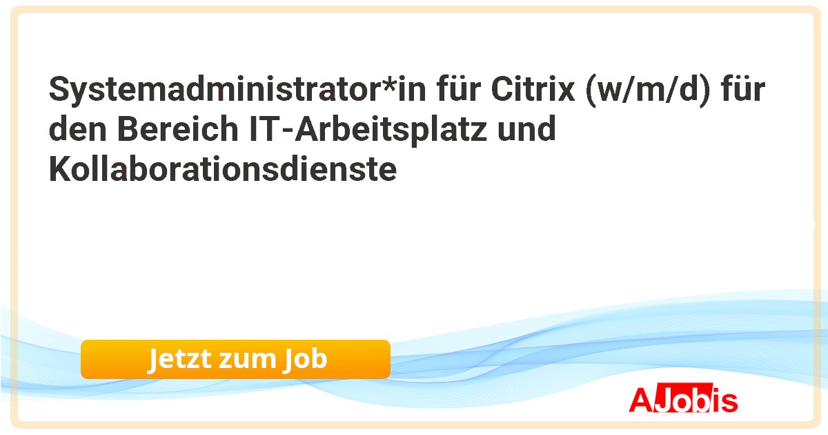 Systemadministrator*in für Citrix (w/m/d) für den Bereich IT-Arbeitsplatz und Kollaborationsdienste* Bundesanstalt für Finanzdienstleistungsaufsicht (BaFin) - Bonn[25.11.2025] --Die Abteilung IT betreibt die Informationstechnik für knapp 3.000 Mitarbeiterinnen und Mitarbeitern der BaFin. Die Aufgaben dieses Bereiches in der Abteilung IT umfassen die Übernahme aller Aufgaben von der konzeptionellen Planung bis zum Betrieb der IT-Arbeitsplätze für... |