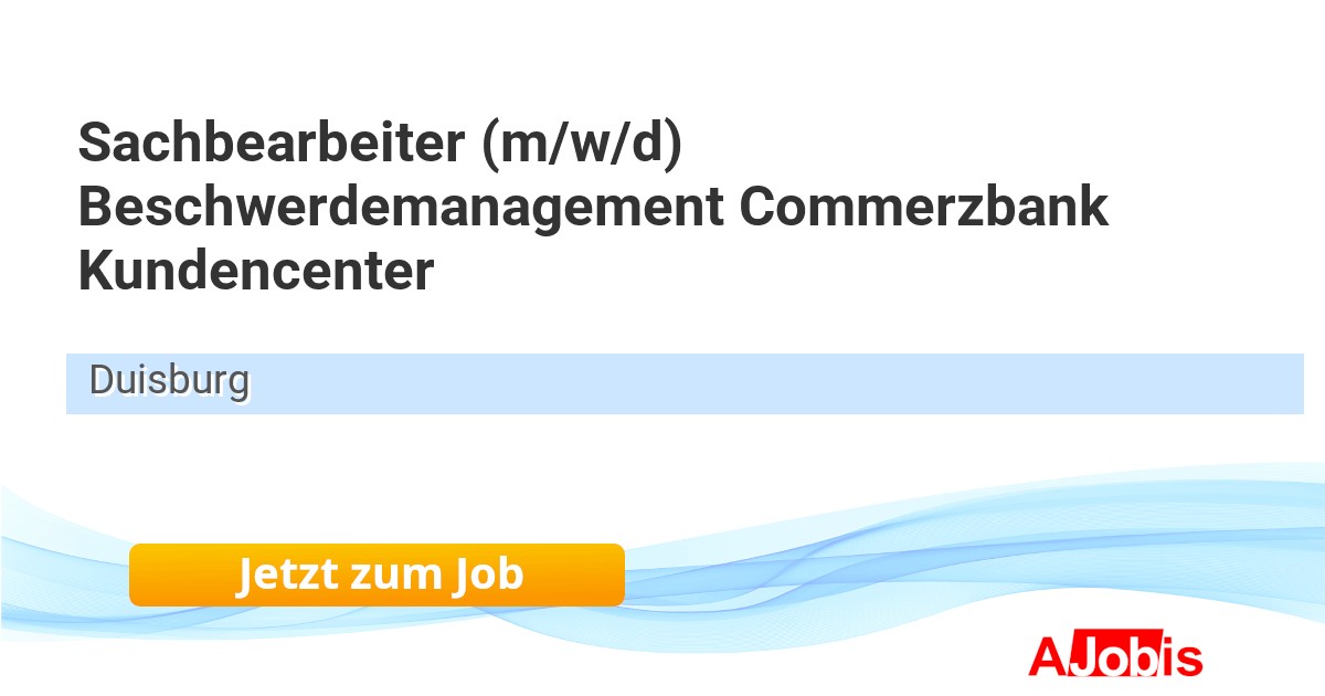 Commerz Direktservice GmbH - Duisburg [07.11.2025] --Als serviceorientierte Ansprechperson beantwortest du nach deiner ausführlichen Einarbeitung Beschwerden unserer Kundinnen und Kunden zu Bankprodukten, Verhalten von Mitarbeitenden oder Leistungen des Commerzbank Konzerns