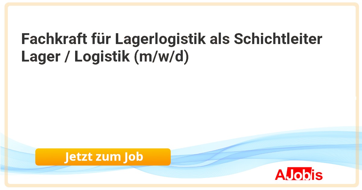 Piening GmbH - Detmold [24.11.2025] --Wir suchen Unterstützung im Lager-Logistik-Bereich Für einen renommierten Kunden am Standort Detmold suchen wir Fachkräfte im Bereich Lagerlogistik für den Bereich Distributionslogistik . Wahlweise suchen wir auch Fachlageristen (gn) mit fundierten Kenntnissen. ... |