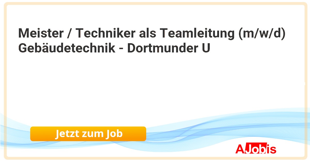 TechnologieZentrumDortmund Management GmbH - Dortmund [29.11.2025] -- Meister / Techniker als Teamleitung (m/w/d) Gebäudetechnik - Dortmunder U Meister / Techniker als Teamleiter Gebäudetechnik (m/w/d) im „Dortmunder U“, dem Wahrzeichen der Stadt Dortmund Vollzeit Über uns: Jeden Tag stellen sich unsere Mitarbeiter*innen mit... |