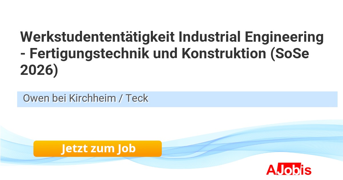 Leuze electronic GmbH + Co. KG - Owen bei Kirchheim / Teck [07.11.2025] --Werkstudententätigkeit Industrial Engineering – Fertigungstechnik und Konstruktion (SoSe 2026) Bereich: Product Management Standort: Owen bei Kirchheim / Teck Beschäftigungsart: Werkstudierendentätigkeit Wer sind die Sensor People Über 60 Jahre Erfahrung haben Leuze... |