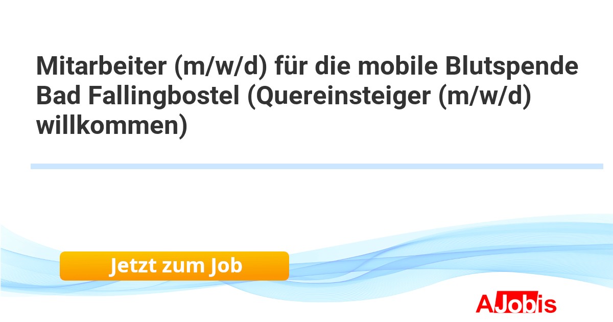 DRK-Blutspendedienst NSTOB gGmbH - Bad Fallingbostel [30.11.2025] -- Medizinisches Fachpersonal (m/w/d) im Bereich Blutentnahme (Medizinischer Fachangestellter, Rettungssanitäter, Notfallsanitäter, Gesundheitspfleger/Krankenpfleger, Altenpfleger, Arzthelfer (m/w/d)) Sie suchen eine Aufgabe mit Sinn bei einem fortschrittlichen Arbeitgeber?... |