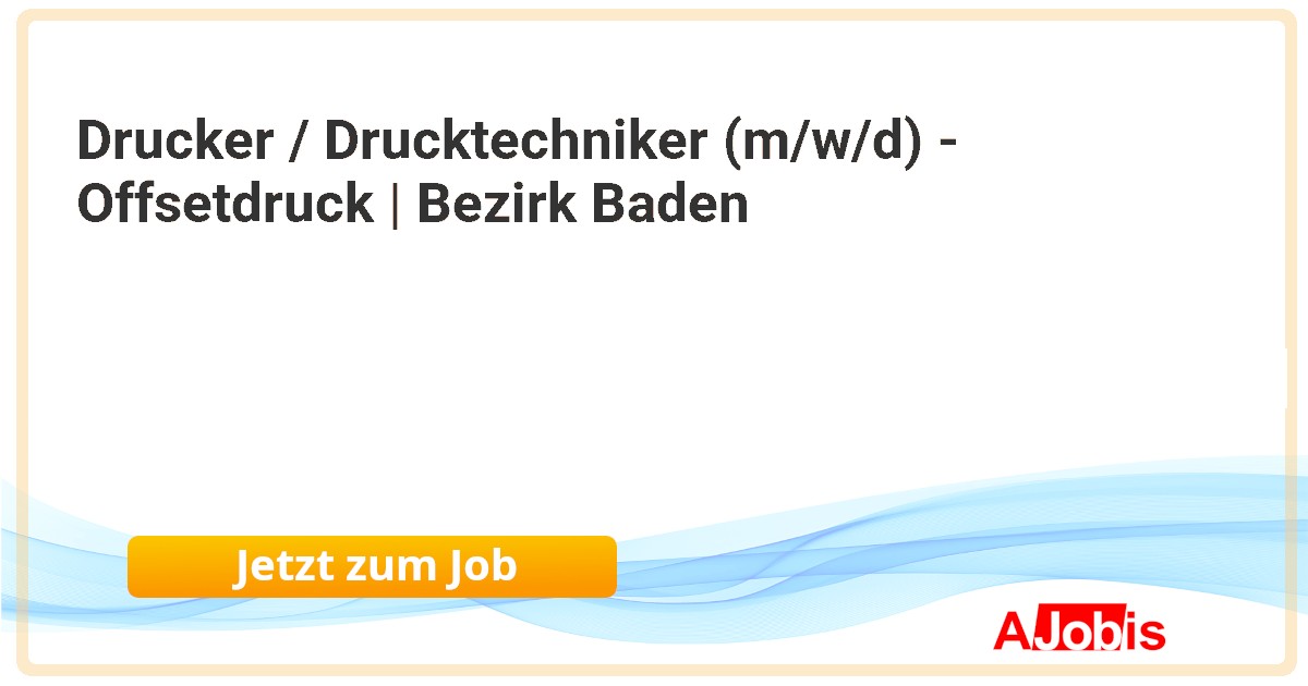 zwölfer – die 360° personalberatung - Baden [05.11.2025] --Sie sind leidenschaftliche:r Drucker:in und suchen nach einer eigenständigen Position im Druckhandwerk? Dann sind Sie hier genau richtig! Unser Auftraggeber – ein traditionsreiches Familienunternehmen im Bezirk Baden – sucht Verstärkung im Bereich Offsetdruck. Wenn Sie... |