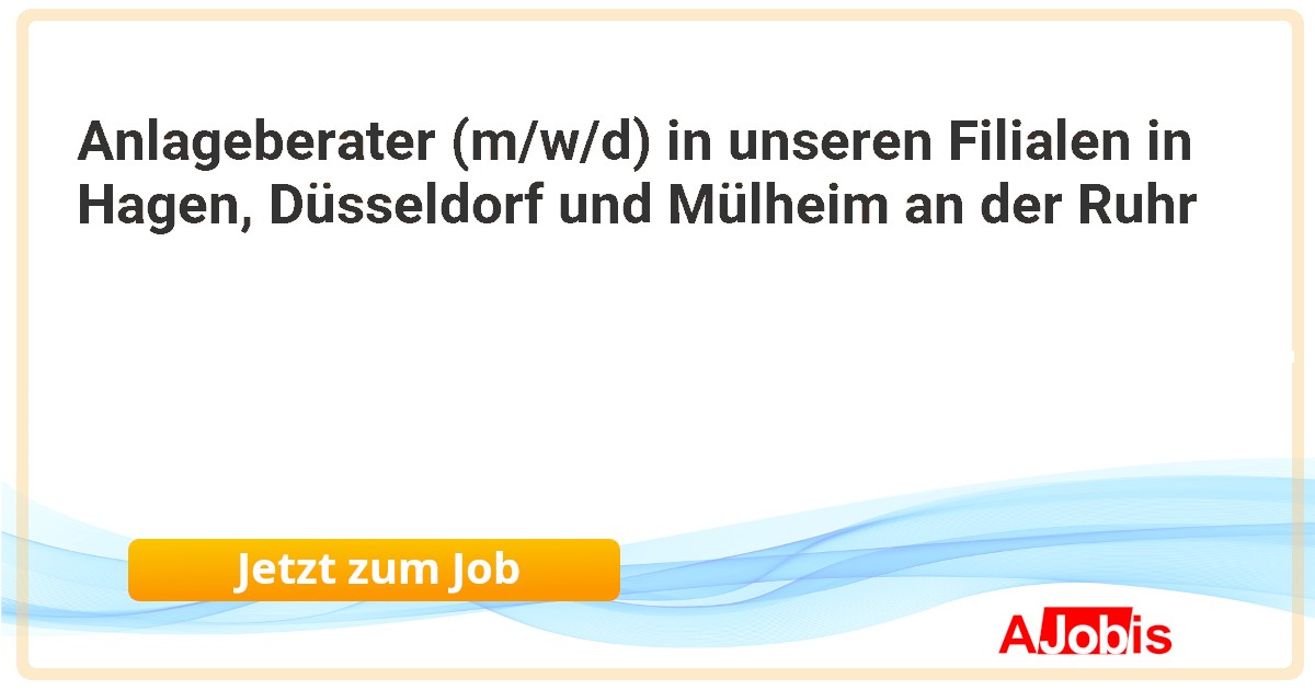 Sparda-Bank West eG - Düsseldorf [08.11.2025] -- Stellenausschreibung Anlageberater (m/w/d) in unseren Filialen in Hagen, Düsseldorf und Mülheim an der Ruhr Wir suchen Dich für unsere Teams als Orientierungsstifter (m/w/d) im Bereich Finanzen. Mit Fairness, Leistung und Sympathie sind unsere Mitarbeiter gemeinsam... |