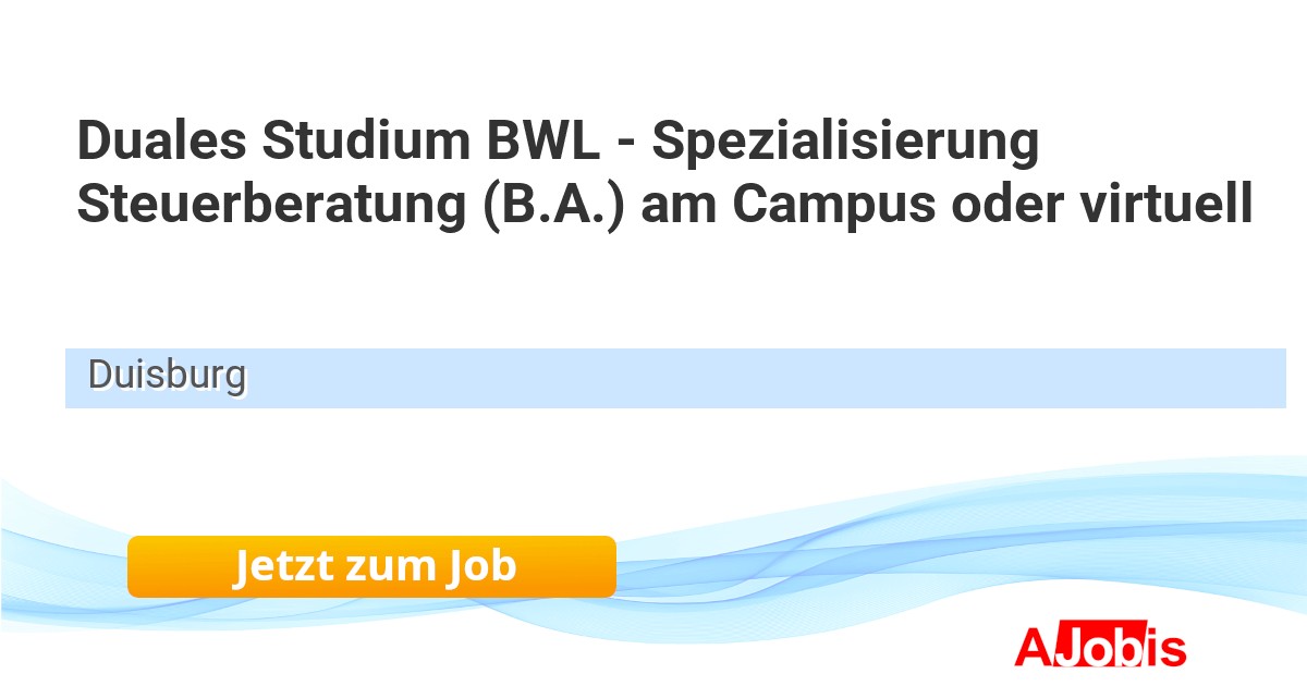 IU Internationale Hochschule - Duisburg [09.11.2025] -- Du interessierst Dich für das Steuerwesen und hast keine Scheu vor Zahlen? Dann ist das Duale Studium BWL - Spezialisierung Steuerberatung genau Dein Ding. Dabei eignest Du Dir sowohl grundlegendes betriebswirtschaftliches Knowhow an als auch fundiertes branchenspezifisches... |