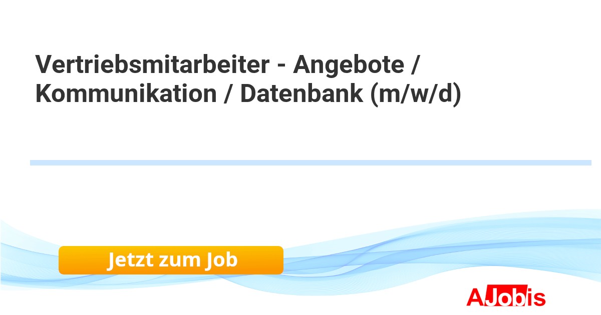 Stadtwerke Annaberg-Buchholz GmbH - Annaberg-Buchholz [09.11.2025] -- Attraktiver Arbeitsplatz, verantwortungsvolle Tätigkeit in einem modernen, familienfreundlichen Unternehmen. VERTRIEBSMITARBEITER (MENSCH)ab sofort AUFGABEN... Vertrieb von technischen Dienstleistungen und Produkten Neukundengewinnung und Bestandskundenbetreuung im... |