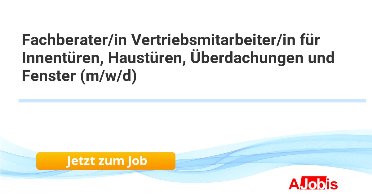Fachberater/in Vertriebsmitarbeiter/in für Innentüren, Haustüren, Überdachungen und Fenster (m/w/d)* BAUMENT GmbH - Lüdinghausen[08.11.2025] -- Ursprünglich als Tischlerei gegründet, ist die BAUMENT GmbH auf den Verkauf und die Montage von individuellen Bauelementen, wie Innentüren, Haustüren, Fenstern, Überdachungen und Beschattungen spezialisiert. In unseren Ausstellungsräumen an der Raiffeisenstraße 2 in... |