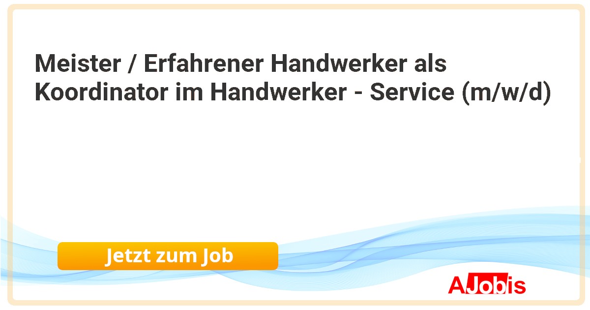 toom BauMarkt GmbH - Nieder-Olm [25.11.2025] -- Meister / Erfahrener Handwerker als Koordinator im Handwerker - Service (m/w/d) für toom in Nieder-Olm Vollzeit Nieder-Olm unbefristet ab sofort Bei uns stehst du im Vordergrund. Und ein ganzes Team hinter dir: Denn Respekt, gegenseitige Wertschätzung und... |