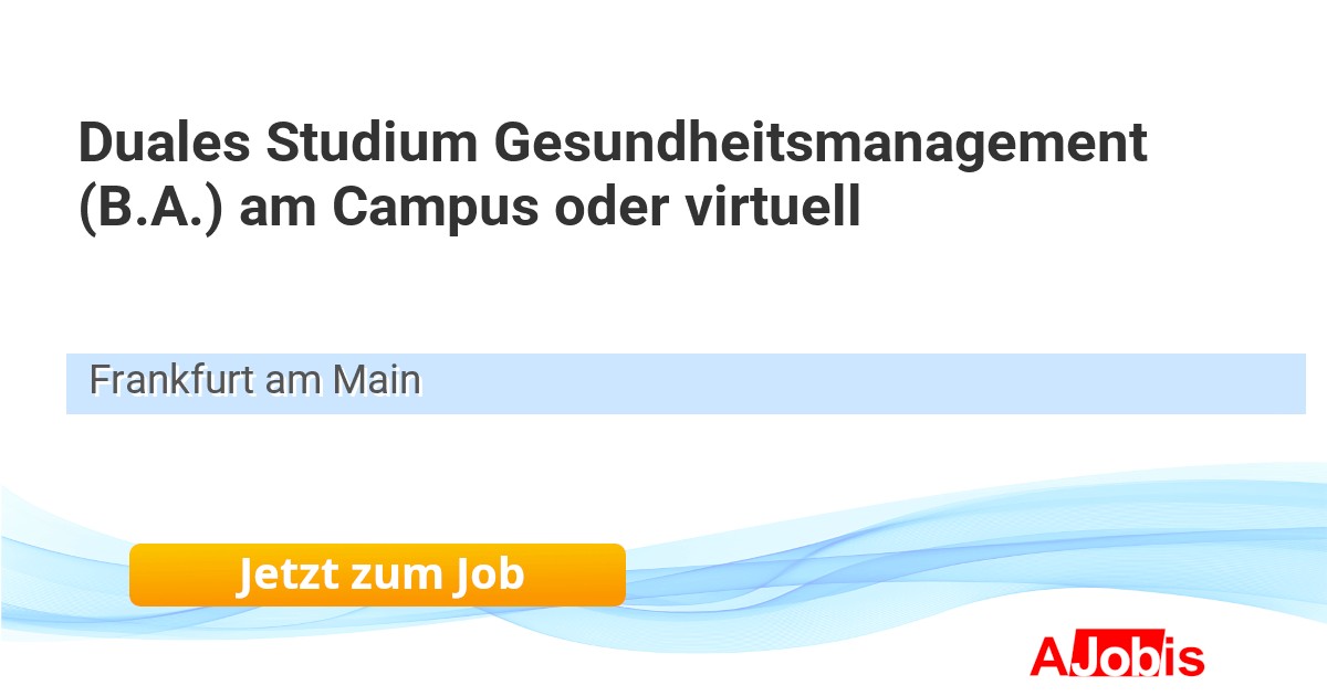 IU Internationale Hochschule - Frankfurt am Main [10.11.2025] -- Administrative Aufgaben in Gesundheitseinrichtungen übernehmen – das wäre genau Dein Ding? Dann starte durch mit einem Dualen Studium Gesundheitsmanagement. Starte Dein Duales Studium je nach Standort im Januar, April, Juli oder im Oktober – direkt am Campus vor Ort... |