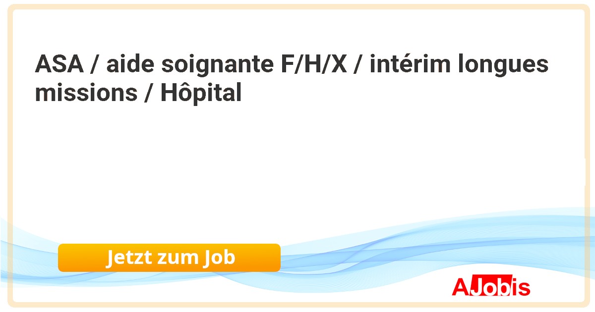 [23.11.2025] --ASA / aide soignante F/H/X / intérim longues missions / HôpitalNous recherchons des Aides en soins et accompagnement/Aide soignant H/F/D domiclié en Suisse obligatoirement pour intervenir au sein d'un hôpital réputé à Genève - Planning 70-100% - Interim...