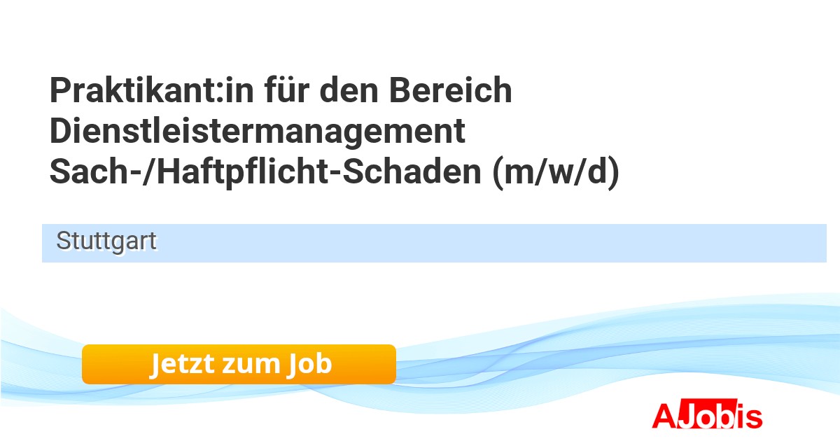 SV SparkassenVersicherung - Stuttgart [06.11.2025] -- Praktikant:in für den Bereich Dienstleistermanagement Sach-/Haftpflicht-Schaden (m/w/d)für unseren Standort in Stuttgart Unser Konzern mit rund 5.000 Menschen und mehreren Standorten ist Teil der Sparkassen-Finanzgruppe und bietet alle Arten von Versicherungen.... |