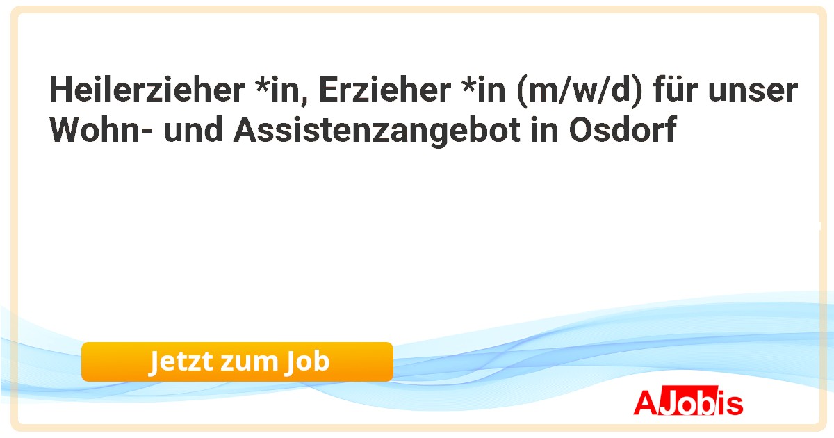 Evangelische Stiftung Alsterdorf - alsterdorf assistenz west gGmbH - Hamburg [07.11.2025] --Heilerzieher *in, Erzieher *in (m/w/d) für unser Wohn- und Assistenzangebot in Osdorf Über unsalsterdorf assistenz west – das sind rund 1000 Mitarbeiter *innen an 73 Standorten. Gemeinsam stehen wir für Empowerment und Inklusion von Menschen mit Behinderung in Hamburg.... |