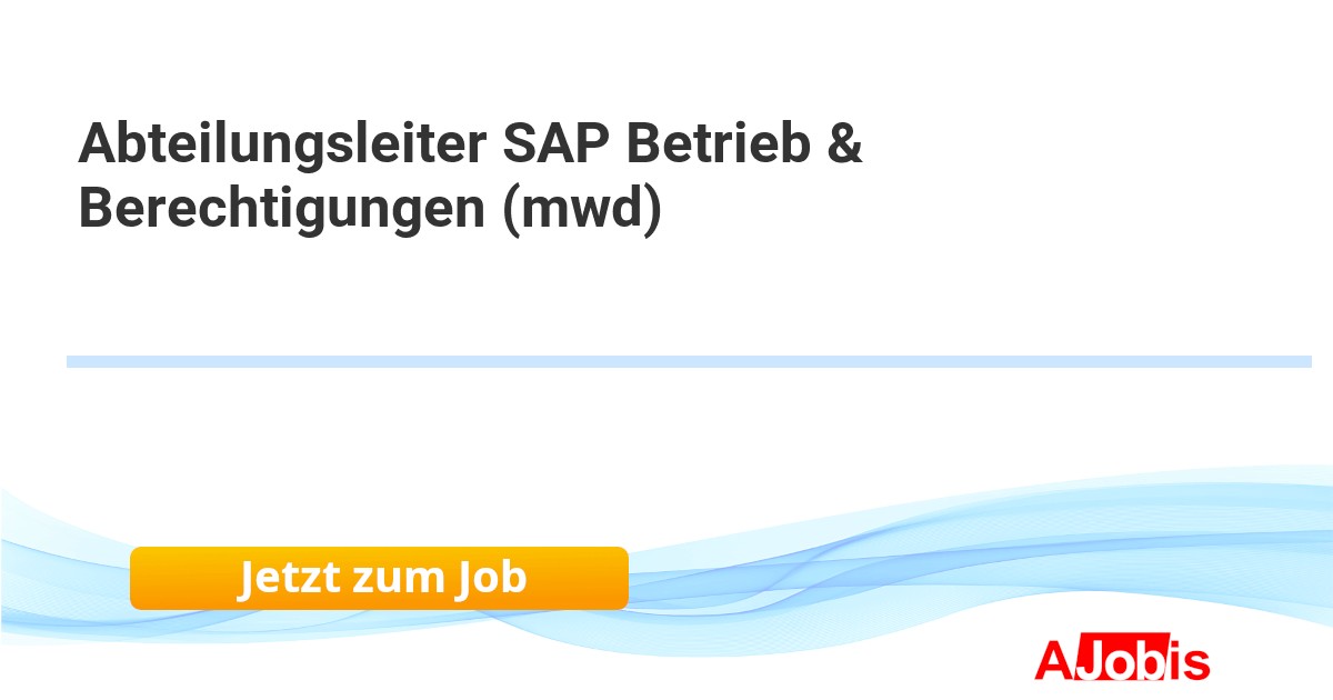 Vesterling AG - Wiesbaden [11.11.2025] --Als Abteilungsleiter SAP Betrieb & Berechtigungen leiten Sie eine Abteilung mit rund 15 Mitarbeitenden im Schwerpunkt SAP Basis. Unser Klient ist eine zentrale Dienstleistungsorganisation mit Sitz in Wiesbaden, die rund 600 Mitarbeitende beschäftigt und Organisationen bei der... |