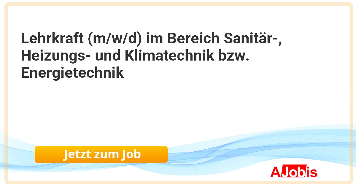 Ministerium für Kultus, Jugend und Sport Baden-Württemberg - Baden-Württemberg [24.11.2025] -- Das Ministerium für Kultus, Jugend und Sport ist als Landesbehörde zuständig für die Bildungsangebote des Landes von der Kita bis zur Hochschulreife. Ihr Ziel: Lehrkraft (m/w/d) im Bereich Sanitär-, Heizungs- und Klimatechnik bzw. Energietechnik an beruflichen Schulen in... |