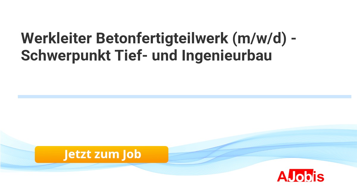 P.V. Betonfertigteilwerke GmbH - Kempten (Allgäu) [07.11.2025] -- Werkleiter Betonfertigteilwerk (m/w/d) - Schwerpunkt Tief- und Ingenieurbau Werkleiter Betonfertigteilwerk (m/w/d) – Schwerpunkt Tief- und Ingenieurbau Werk Kempten | Festanstellung | Ab sofort | Vollzeit Über die P.V. Gruppe Als moderne, leistungsfähige sowie... |