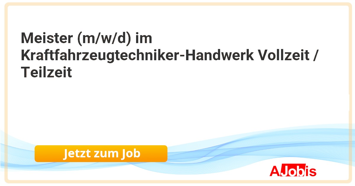 Handwerkskammer Flensburg - Flensburg [12.11.2025] --Handwerkskammer Flensburg FlensburgVoll- oder Teilzeitbefristet für 2 Jahreab sofort Meister (m/w/d) im Kraftfahrzeugtechniker-Handwerk Als Ausbilder (m/w/d) in unserem Bildungszentrum geben Sie innerhalb einer spannenden und abwechslungsreichen Aufgabe Ihre Erfahrungen und... |