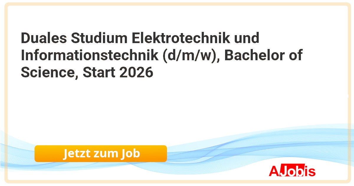 Landeshauptstadt München - München [01.11.2025] --Duales Studium Elektro- und Informationstechnik (B.Eng.) 2026 Hochbau - (w/m/d) Ausbildungsbeginn: September 2026 Arbeitszeit: Vollzeit Homeoffice möglich 30 Tage Urlaub pro Jahr Einsatzort: München Bewerbungsfrist: 31.01.2026 Verfahrensnummer: 23889 Das... |