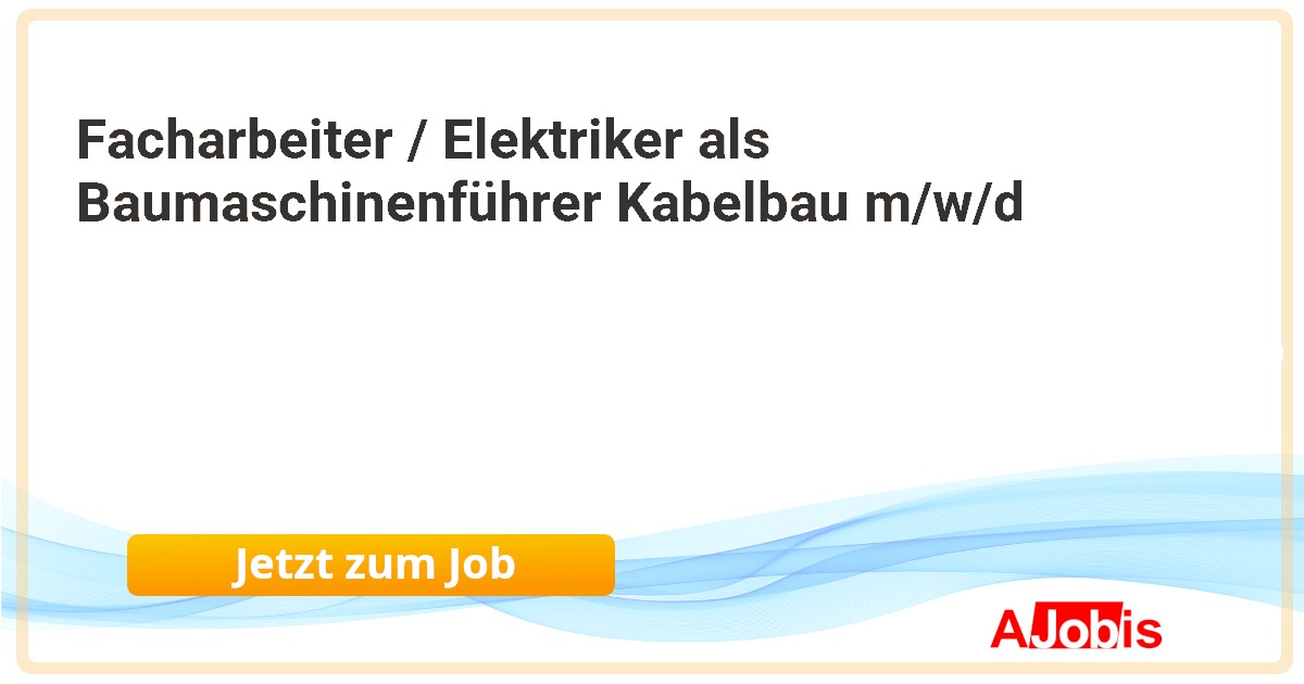 SPIE SAG GmbH GB City Networks & Grids - Düsseldorf [08.11.2025] --Als Marktführer für energietechnische Infrastruktur sucht die SPIE SAG GmbH Dich für Ihr Team im Geschäftsbereich CityNetworks & Grids zum nächstmöglichen Zeitpunkt als Facharbeiter / Elektriker als Baumaschinenführer Kabelbau m/w/d Einsatzort: Großraum Düsseldorf... |