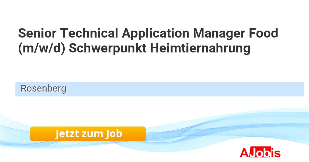 J. Rettenmaier & Söhne GmbH + Co KG - Rosenberg [23.11.2025] -- Senior Technical Application Manager Food (m/w/d) Schwerpunkt Heimtiernahrung Rosenberg | DE | Vertrieb | Festanstellung | Vollzeit JRS ist Knowhow- und Weltmarktführer für nachhaltige und funktionale Pflanzenfaser-Technologie. Als attraktiver Arbeitgeber wachsen wir in der... |