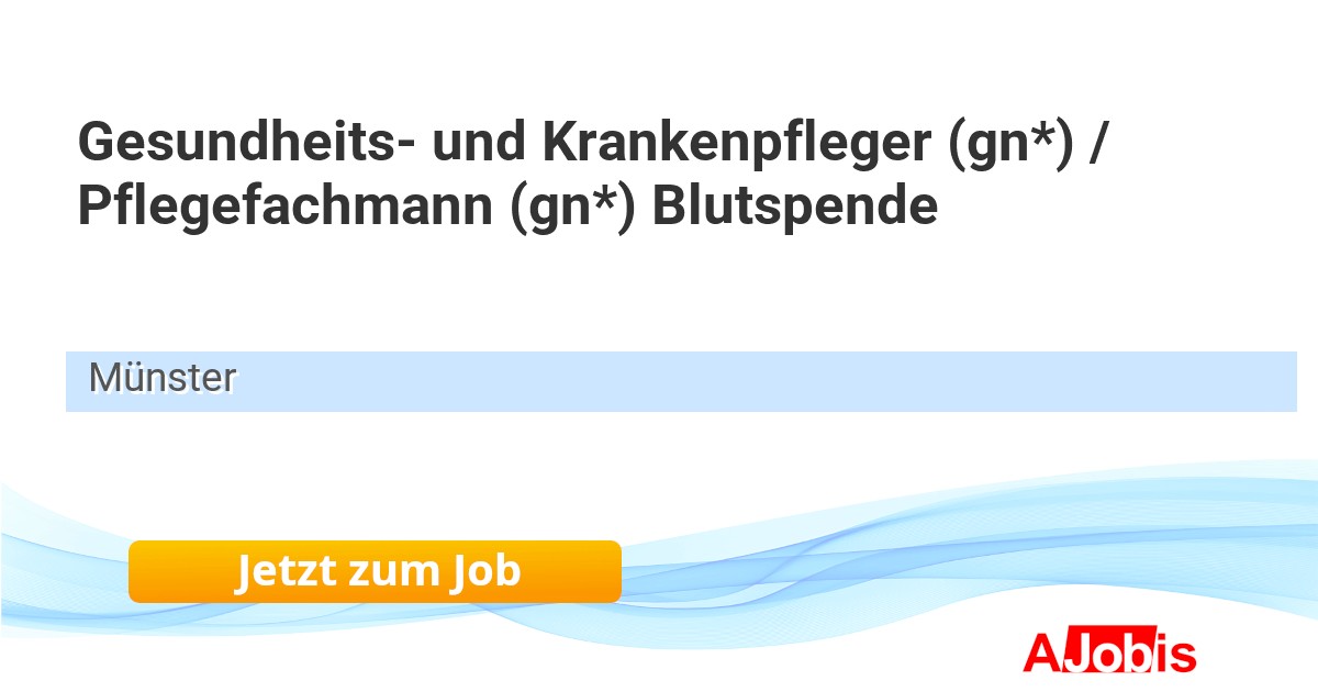 UKM Universitätsklinikum Münster - Münster [07.11.2025] --Gesundheits- und Krankenpfleger (gn*) / Pflegefachmann (gn*) Blutspende Unbefristet | In Vollzeit mit 38,5 Wochenstunden | Vergütung nach TV-L | Institut für Transfusionsmedizin und Zelltherapie | Blutspende | Kennziffer 11330 Wir sind das UKM. Wir haben einen klaren... |
