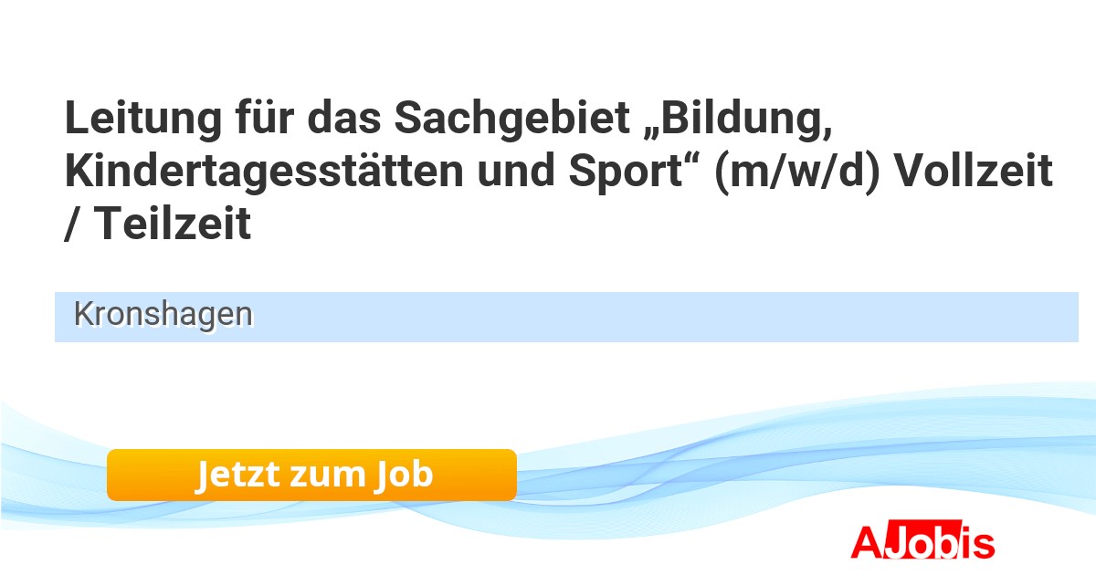 Gemeinde Kronshagen - Kronshagen [24.11.2025] -- Wir suchen zum nächstmöglichen Zeitpunkt unbefristet eine Leitung für das Sachgebiet „Bildung, Kindertagesstätten und Sport“ (m/w/d)in Voll- oder Teilzeit. Die Vergütung erfolgt bei Vorliegen der persönlichen Voraussetzungen nach der Entgeltgruppe 11 TVöD bzw. A... |
