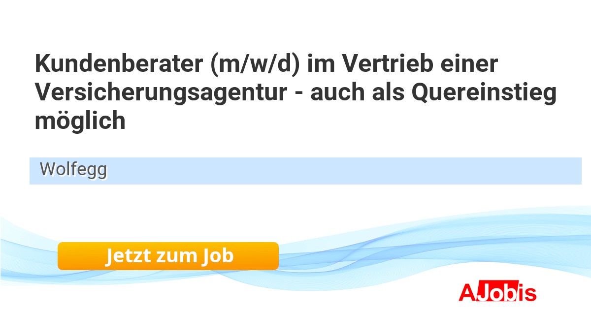 Württembergische Versicherung Aktiengesellschaft - Wolfegg [24.11.2025] --Bei der Württembergischen können wir uns aufeinander verlassen. Als Team sind wir immer füreinander da, wachsen zusammen und feiern Erfolge gemeinsam. Denn Sicherheit ist unsere Mission – auch in bewegten Zeiten. Wir suchen im Auftrag einer selbständigen... |
