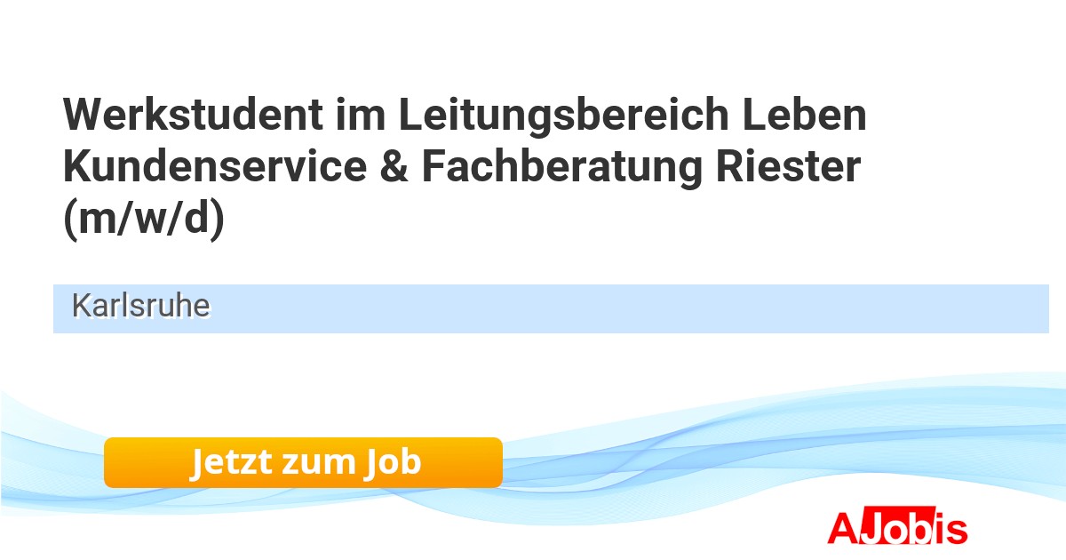 Allianz Lebensversicherungs-AG - Karlsruhe [27.11.2025] --Willkommen bei der Allianz Für unseren modernen und innovativen Standort in Karlsruhe (Kriegsstraße) suchen wir in unserer Abteilung „Leben Kundenservice' Werkstudenten (m/w/d) zur Unterstützung in der Sachbearbeitung und in Projekten. Im Rahmen deiner Tätigkeit... |