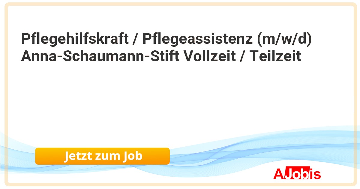 Bethel im Norden - Langenhagen [07.11.2025] --Pflegehilfskraft/Pflegeassistenz (m/w/d) Anna-Schaumann-Stift Stellen ID: 21195 Arbeitsfeld: Altenhilfe Standort: Langenhagen, DE, 30853 Stellenumfang: Vollzeit/Teilzeit In der Birkenhof Altenhilfe gGmbH von Bethel im Norden suchen wir für unser Anna-Schaumann-Stift am... |