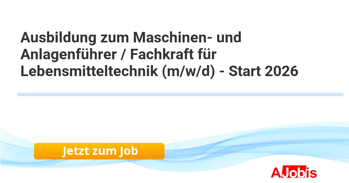 Ausbildung zum Maschinen- und Anlagenführer / Fachkraft für Lebensmitteltechnik (m/w/d) - Start 2026 Vitakraft pet care GmbH & Co. KG - Bremen[28.11.2025] --Vitakraft ist ein international führendes Unternehmen der Heimtierindustrie. Mit einer über 185-jährigen Erfahrung entwickeln und produzieren wir qualitativ hochwertige, bedarfsgerechte Produkte für eine verantwortungsvolle und artgerechte Heimtierhaltung. Mit unseren... |