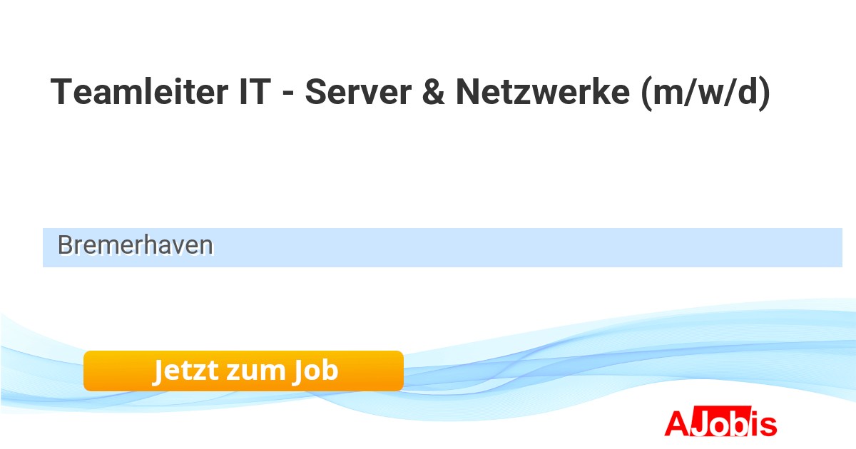 bremenports GmbH & Co. KG - Bremerhaven [04.11.2025] --Teamleiter (m/w/d) IT - Server & Netzwerke STANDORT: Bremerhaven RAHMENBEDINGUNGEN: Zum nächstmöglichen Zeitpunkt, unbefristet und in Vollzeit - Die Stelle ist grundsätzlich teilzeitgeeignet. bremenports entwickelt die bremischen Häfen und hält sie instand. Wir... |