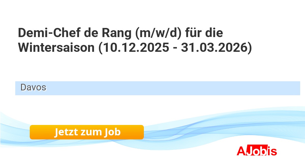 Frutt Mountain Resort managed by Kempinski - Kerns [06.11.2025] --Arbeiten auf 1.920m über dem Meer, mitten in der Zentralschweiz Zur Unterstützung unseres F&B Teams im Frutt Mountain Resort suchen wir für die Wintersaison 2025/26 (Ab Dezember) - gerne auch weitere Saisons- eine aufgestellte und motivierte Persönlichkeit (m/w/d).... |
