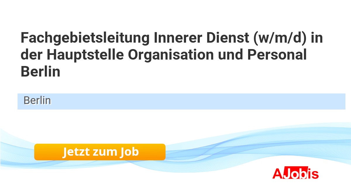 Bundesanstalt für Immobilienaufgaben - Berlin [06.11.2025] --Die Direktion Berlin sucht für den Geschäftsbereich Organisation und Personal am Arbeitsort Berlin zum nächstmöglichen Zeitpunkt eine: Fachgebietsleitung Innerer Dienst (w/m/d) in der Hauptstelle Organisation und Personal Berlin (Entgeltgruppe 12 TVöD Bund /... |