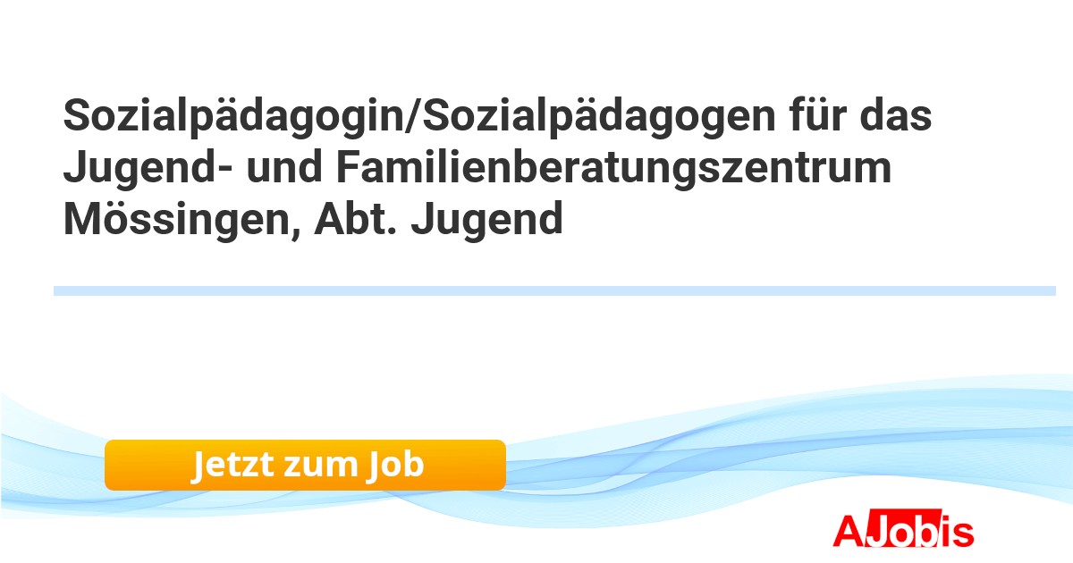 Sozialpädagogin/Sozialpädagogen für das Jugend- und Familienberatungszentrum Mössingen, Abt. Jugend* Landkreis Tübingen - Mössingen[20.11.2025] --Zuständigkeit im Team eines Jugend- und Familienberatungszentrums für Beratung von Kindern, Jugendlichen und deren Eltern nach § 28 SGB VIII