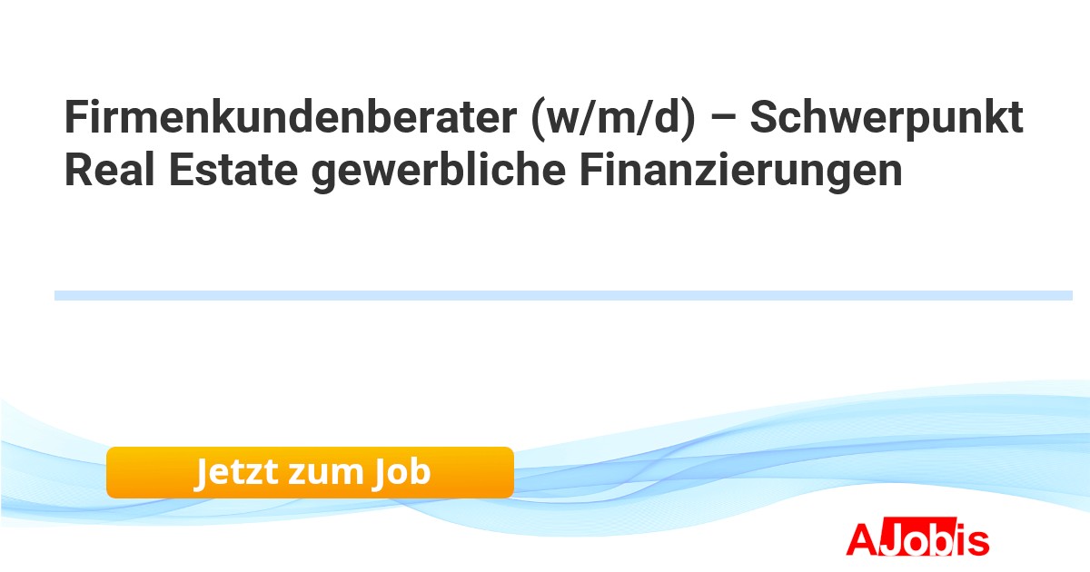 Firmenkundenberater (w/m/d) – Schwerpunkt Real Estate gewerbliche Finanzierungen