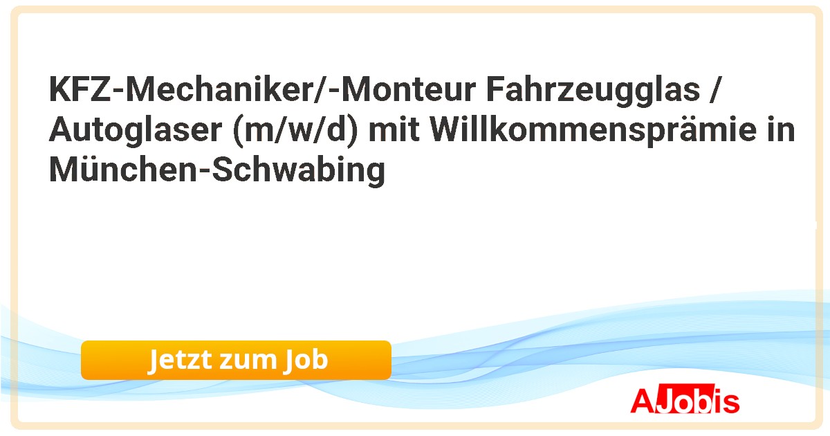 KFZ-Mechaniker/-Monteur Fahrzeugglas / Autoglaser (m/w/d) mit Willkommensprämie in München-Schwabing Freudenberger Autoglas GmbH - München[29.11.2025] --Durch die langjährige Erfahrung und die Zugehörigkeit zur Marke Saint-Gobain Sekurit gehört Freudenberger Autoglas zur ersten Adresse in München, Kerpen, Düsseldorf und Aachen, wenn es um die fachgerechte Verglasung von Fahrzeugen geht. Willkommen bei Saint-Gobain... |
