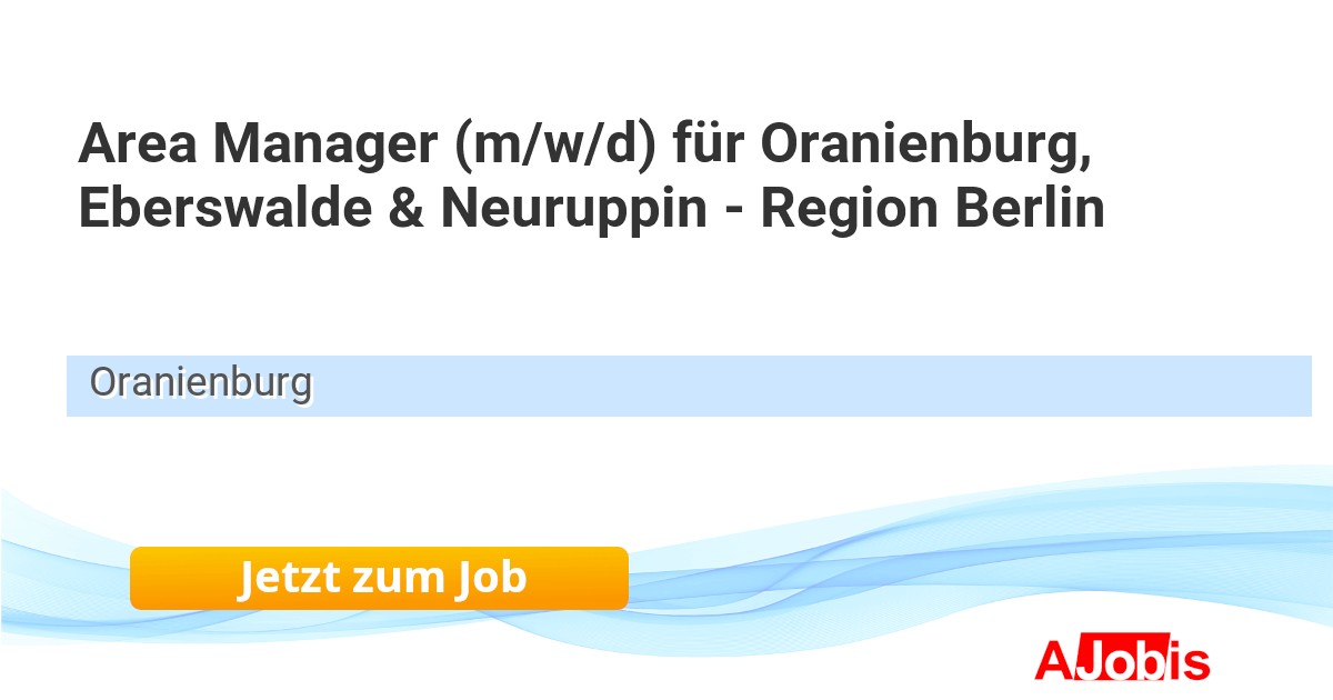 Carglass GmbH - Oranienburg [24.11.2025] --Zur Unterstützung für die Region Berlin suchen wir unbefristet und zum frühestmöglichen Zeitpunkt einen Area Manager (m/w/d) für unsere Standorte in Oranienburg, Eberswalde & Neuruppin - auch für Quereinsteiger. ... |