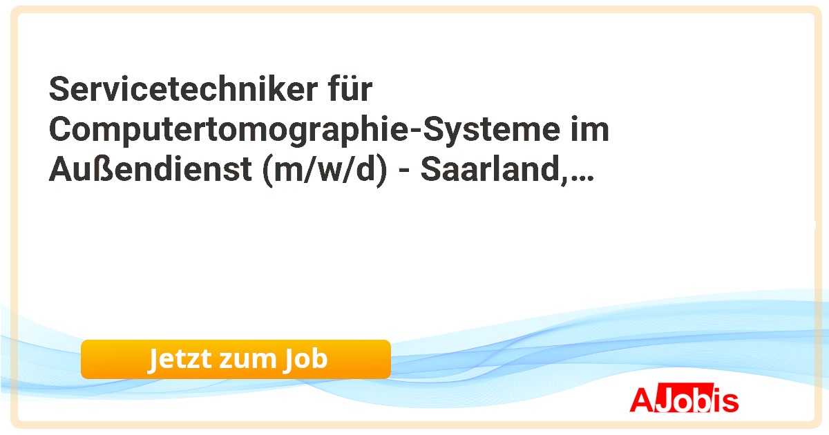 Servicetechniker für Computertomographie-Systeme im Außendienst (m/w/d) - Saarland, Rheinland-Pfalz* Canon Medical Systems GmbH - Saarland, Rheinland-Pfalz[12.11.2025] --Wie wäre es, wenn du mit deiner Arbeit nicht nur technologische Innovationen vorantreiben, sondern auch das Leben von Menschen weltweit verbessern könntest? Unser Unternehmen bietet seit über 130 Jahren eine beeindruckende Bandbreite an Produkten für die diagnostische... |