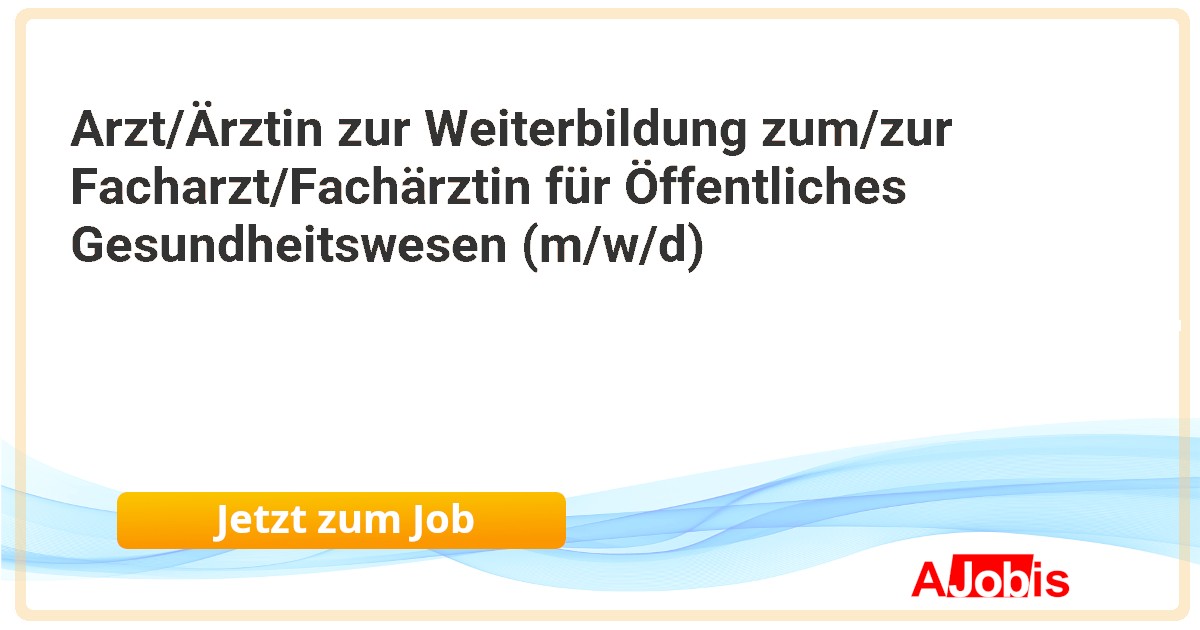 Arzt/Ärztin zur Weiterbildung zum/zur Facharzt/Fachärztin für Öffentliches Gesundheitswesen (m/w/d)* Landkreis Wolfenbüttel - Wolfenbüttel[11.11.2025] --Der Landkreis Wolfenbüttel ist mit mehr als 900 Beschäftigten ein serviceorientierter und beliebter Arbeitgeber in der Region. Wir haben uns Werte wie Gemeinwohlorientierung und Vertrauen besonders auf die Fahne geschrieben. Im Landkreis Wolfenbüttel arbeiten und wirken alle... |