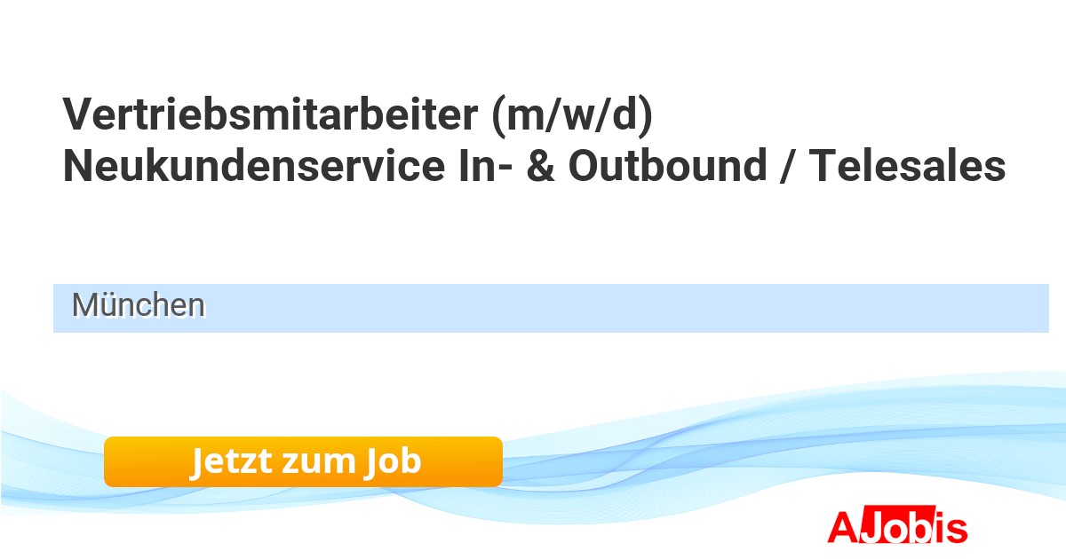 KRAFTFAHRER-SCHUTZ e.V. - München [07.11.2025] -- Für unsere Hauptverwaltung in München suchen wir ab sofort für die Abteilung Direktvertrieb einen Vertriebsmitarbeiter (m/w/d) Neukundenservice In- & Outbound/Telesales in Teilzeit (max. 19 h/Woche) Das haben Sie vor: Zuhören: Sie ermitteln den Bedarf unserer Kunden... |
