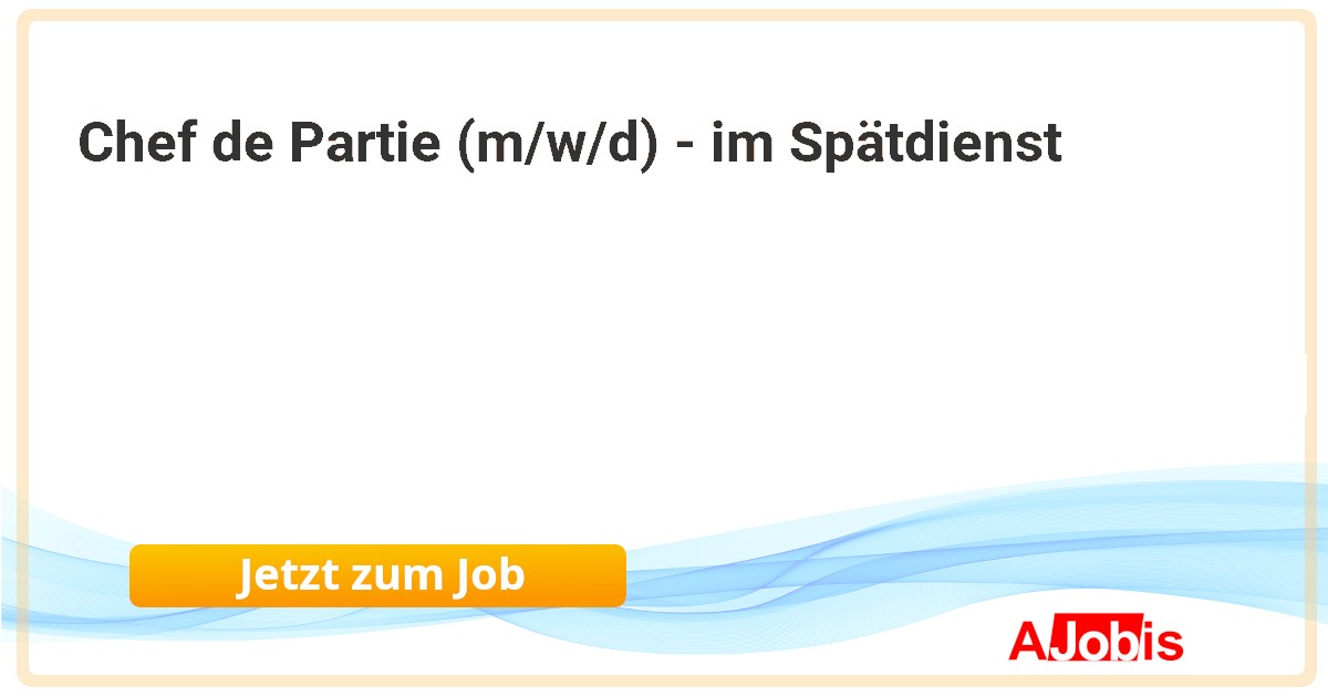 Spa Resort Geinberg - Geinberg           [26.10.2025] --  Für unser Resort suchen wir ab sofort bzw. nach Vereinbarung eine/-n engagierte/-n Chef de Partie.   Anstellungsart: Vollzeit   Vor- und Zubereitung der Speisen für das Gourmet-Menü und die À la carte Mise en Place Weiterentwicklung des kulinarischen Angebots Kontrolle...  |